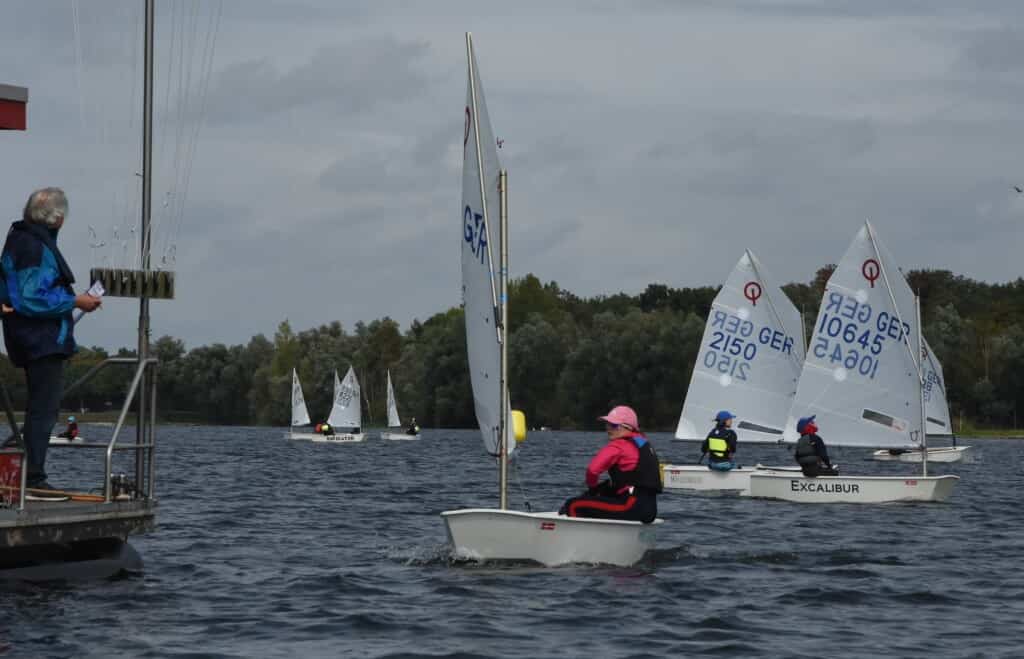 Der Sonntag brachte konstanten Wind aus Süd, der für zwei längere Wettfahrten genutzt wurde. Maximilian Rösner vom Segelsportklub Uerdingen war auch am zweiten Tag das Maß der Dinge und gewann souverän die Regatta der Opti B Klasse mit der Mindestpunktzahl von fünf Punkten. Dies sicherte ihm dann auch den Titel des Stadtmeisters 2025. Platz 2 belegte Luise Pütz von Segelklub Hansa Münster, gefolgt von Lukas van der Donk vom Segelklub Loheider See. Vom gastgebenden Verein belegten Arthur Steegers Platz 4, Lars Müller Platz 7 und Johannes Ganse Platz 10.